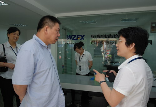 圖為何建平向瑞安發(fā)行站站長(zhǎng)周君了解相關(guān)情況。 |